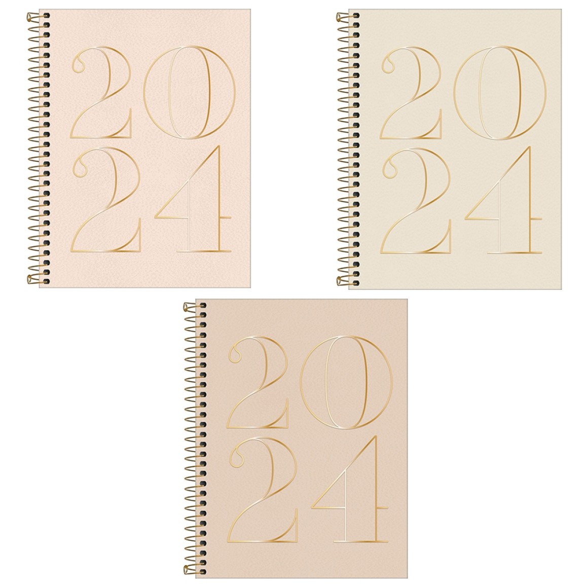 A Agenda Executiva Espiral Diária 17,7 x 24 cm Vanilla 2024 é ideal para a organização do dia a dia, em casa ou no trabalho. Este produto, com visão de 1 dia por página, exceto sábado e domingo, possui capa revestida em material especial, com detalhe metalizado, e acabamento espiral.