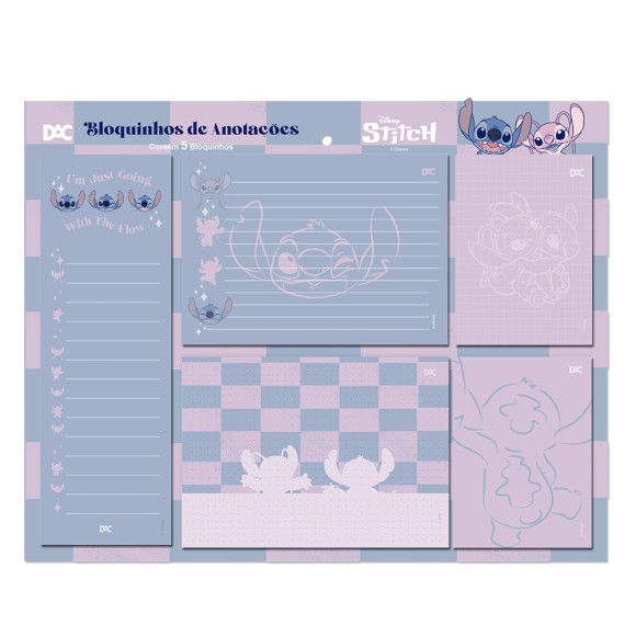 Bloquinhos de Anotações Stitch Disney com 5 Modelos 20 Folhas Cada DAC 4077