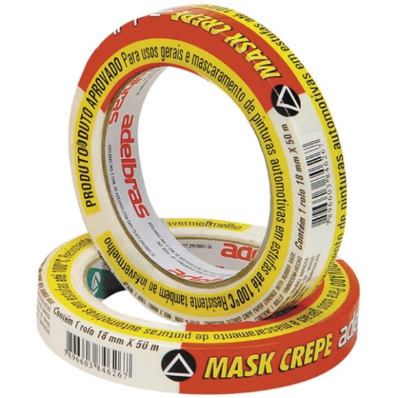 Fita Crepe possui papel com excelente alongamento, proporcionando boa performance em curvas e contornos do mascaramento. Para uso industrial, mascaramento de pinturas imobiliárias, trabalhos escolares, fixações, proteção, enfaixamentos, artesanato, decoração, bricolagem etc. Depois de aplicada, não deixa resíduo na superfície. Resistente a temperaturas de até 100oC. Deve ser removida em até 24 horas após a aplicação.Tamanho: 18mmx50m