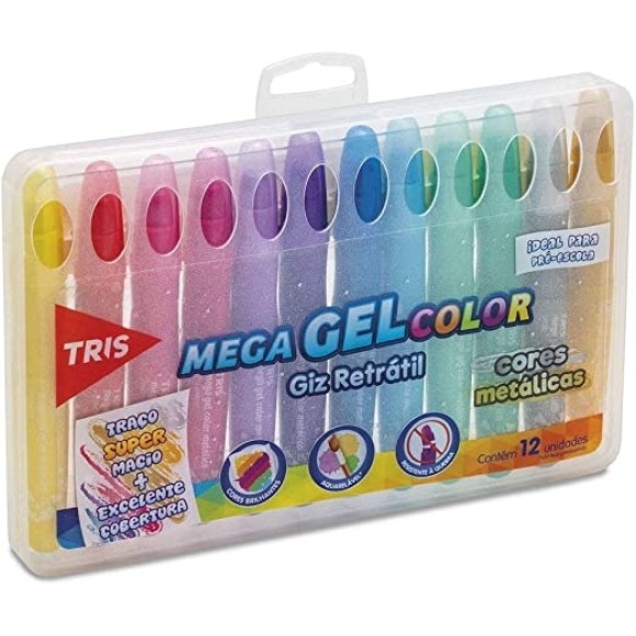 Giz Retrátil Mega Gel Color - Metálico - 12 Cores